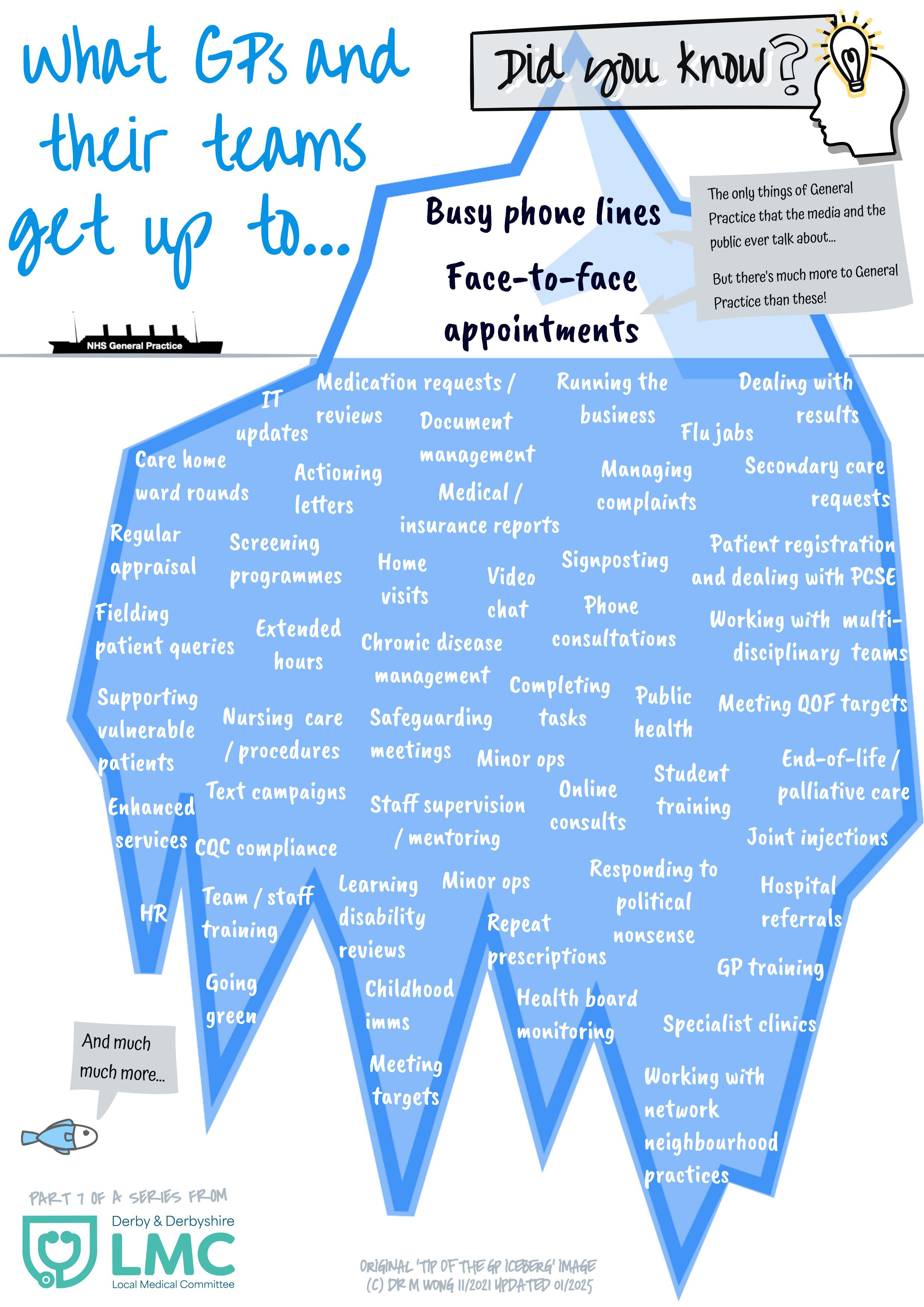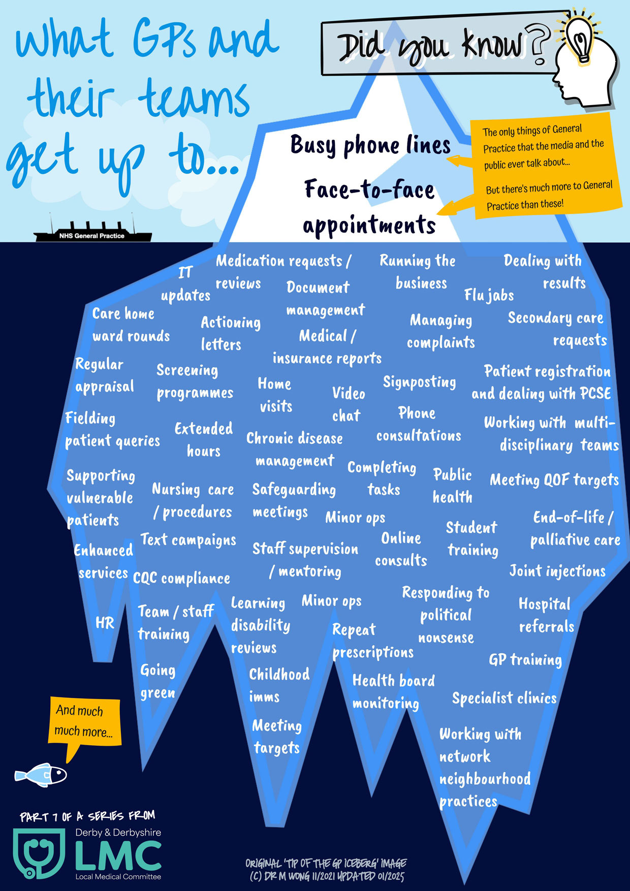 This page displays some of the comms work done for Derbyshire LMC to inform patients, staff and the public on General Practice. This is an active campaign and there will be more to come. Please check back regularly.